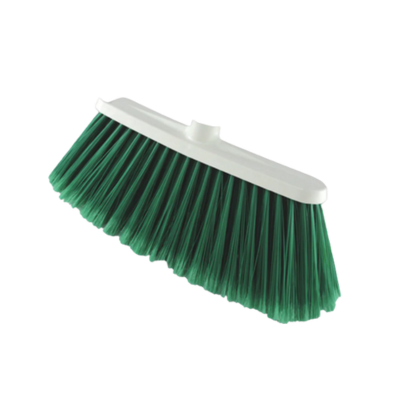 Escoba ideal para uso en exterior, de fibras de pvc con rigidez media.